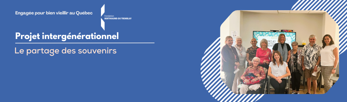 La Fondation Berthiaume du Tremblay s’associe à Dre Marie-Michèle Lord, chercheure à l’Université du Québec à Trois-Rivières, Dre Mélisa Audet, chercheure au Centre collégial d’expertise en gérontologie et Loïc Chabot, fondateur de la compagnie Les Souvenirs Partagés pour mettre en place le projet Le partage des souvenirs.